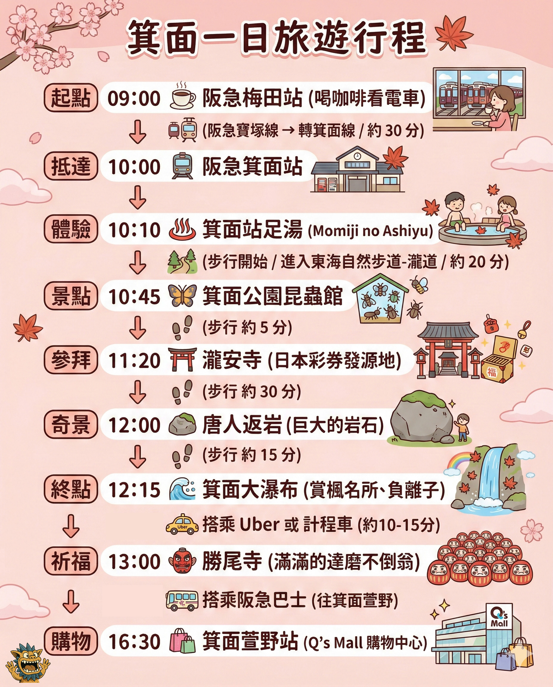 以上,就是以大阪箕面為主的一日行程建議